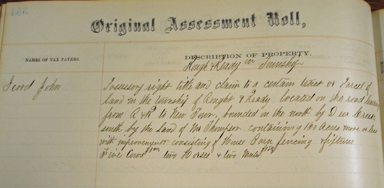 My new best friend at the Foley Library encouraged me to head over to the Searls Historical Library, also in Nevada City, to look for additional details. Once there, the friendly volunteer informed me that, sadly, the assessor’s records went back only to 1862 because earlier ones had been destroyed in a series of courthouse fires. However, she did bring me the original book “Kitt’s Index…” In it I was able to find later transactions by the individuals named in my ancestor’s deed. Using this information I was able to locate the assessor’s record of a portion of the property in the 40-lb. Assessors Book of 1862 that the volunteer was barely able to wrangle off of the shelf. At that time the 160 acres of land improved with “house, barn, fencing, fixtures, five cows, two horses, and two mules” was valued at $450 real estate and $250 personal property. The tax assessed that year was $9.61. This was pretty cool, but I wanted to see the land for myself.