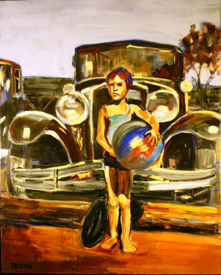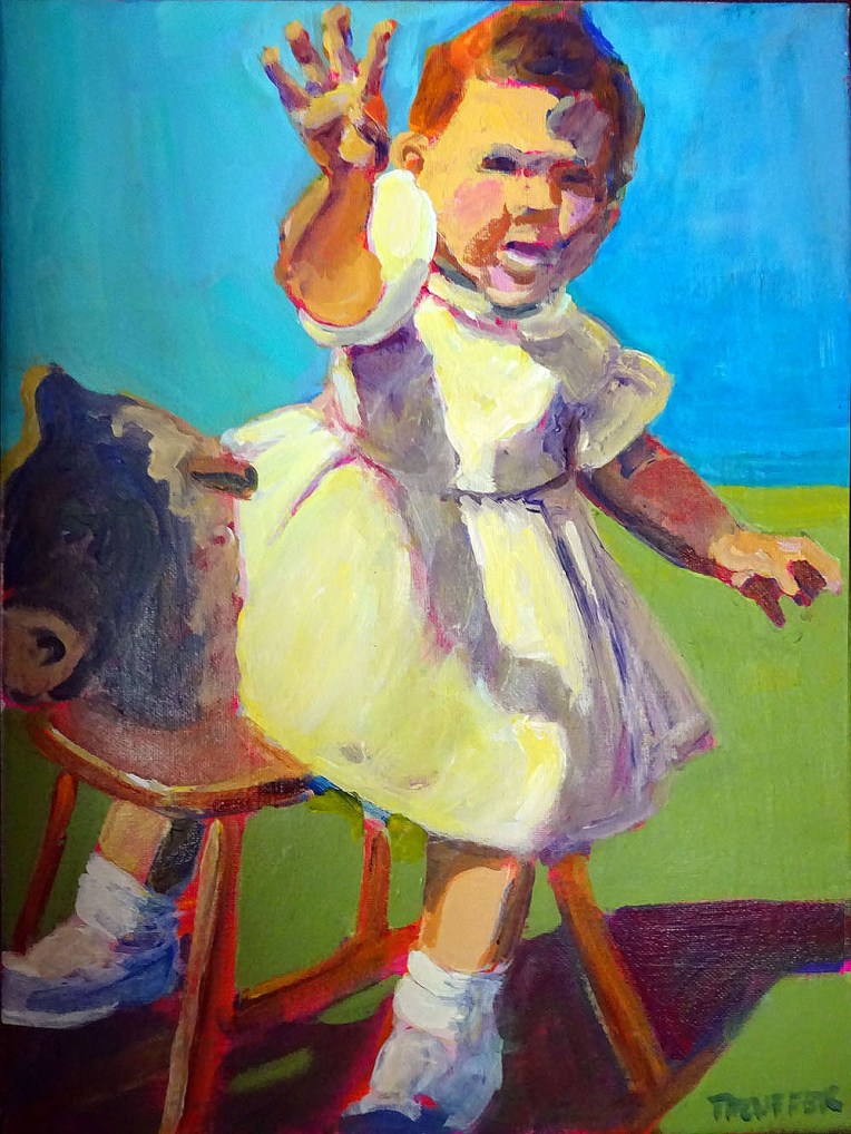 When I started painting, my mentor suggested using old family photos as reference material. These images would be deeply familiar and meaningful to a new painter, keeping me working when the paint didn’t cooperate. Over the years, I’ve developed a whole body of work illustrating my early life and my family history. I hope you enjoy these images. — Joanne Taeuffer
