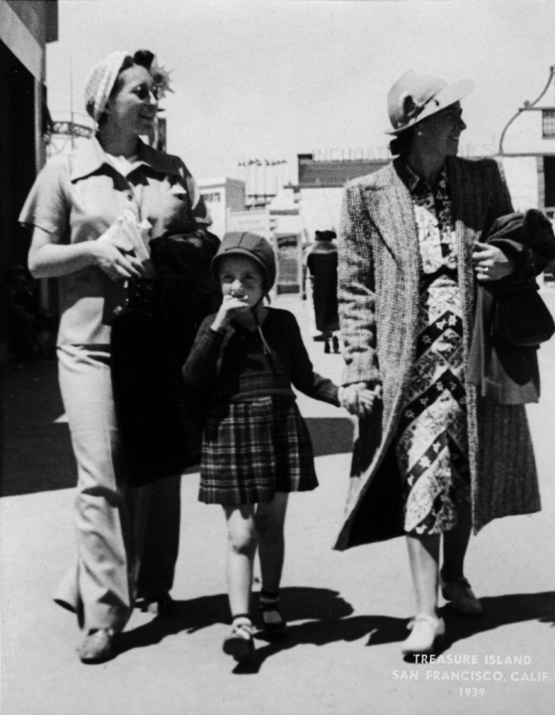 In March 1939, The Healdsburg Tribune, Enterprise and Scimitar ran a lighthearted “bird’s eye view” of the fair to entice locals to motor down to the City for the event. Visitors from Healdsburg included 19 year-old Maria Buchignani, who attended with her Aunt Catherine Poulson Giorgi and her cousin “Little Catherine” Giorgi who lived in San Francisco. Maria, who was working as bookkeeper for Rosenberg’s Department Store in Healdsburg, brought along her brand new Brownie camera and two rolls of film to take photos of the lovely sites that would greet her there.