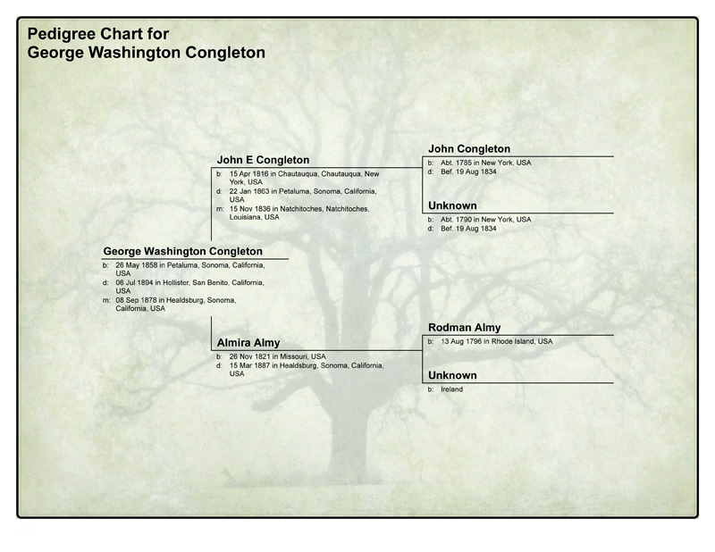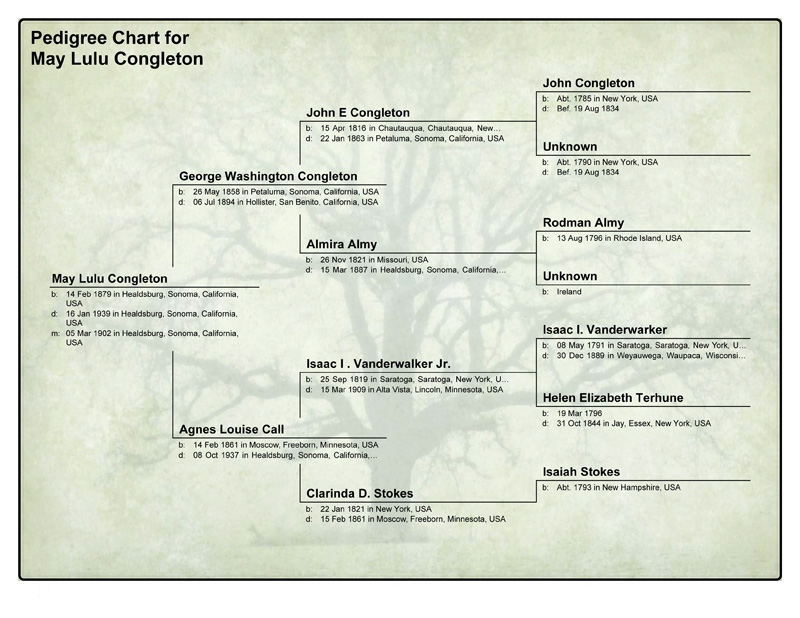 This is my father’s pedigree chart. Both sides arrived in Sonoma County, California fairly early on in the local history.