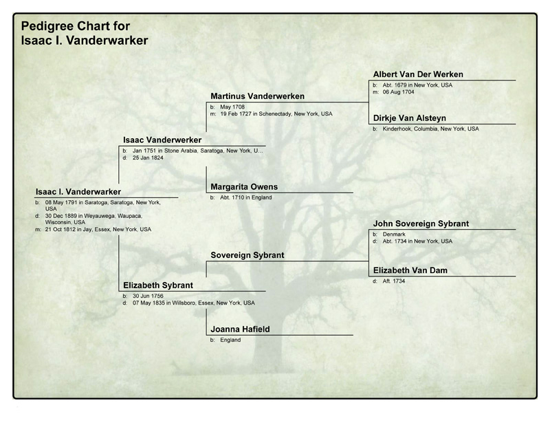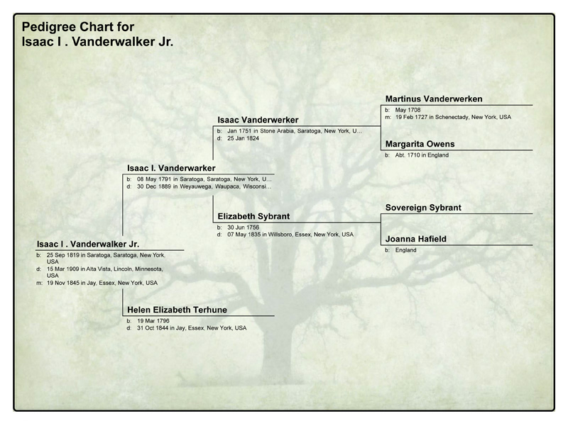 Agnes Call’s birth line has been traced back to Colonial Times. Much of this information was obtained through the work of Mrs. Grace Leddick Everts, a Vanderwalker descendant, in the 1950s. She was also the official Historian of Saratoga County, New York, where the Vanderwalker roots originated in North America.