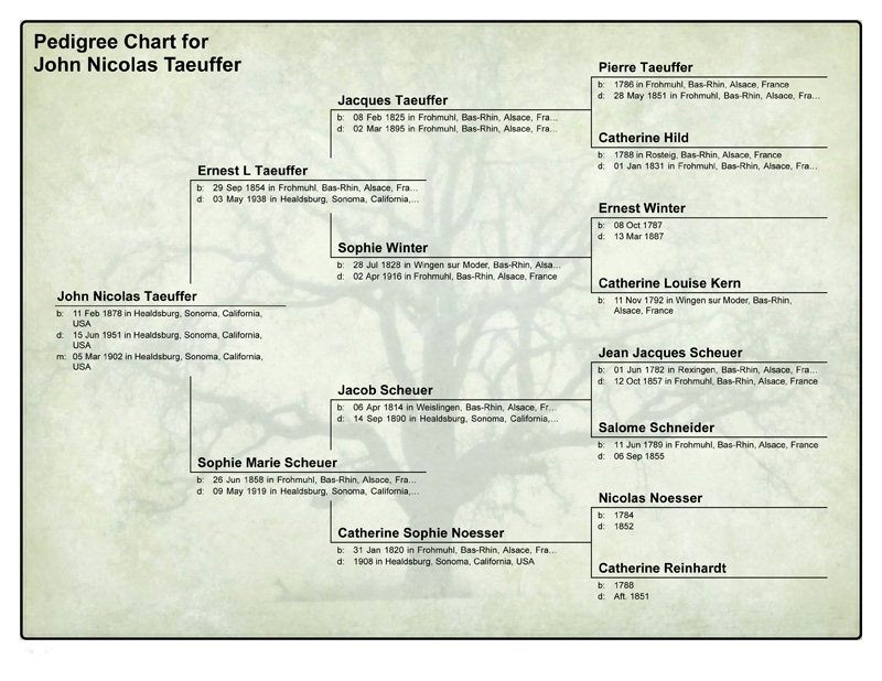 His parents, John Taeuffer and May Congleton were both born in Healdsburg, California.