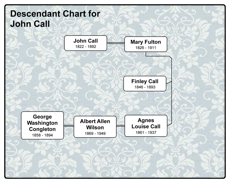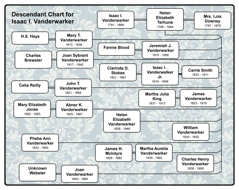 The Vanderwalker/Vanderwarker/Vanderwarken family tree goes back to Colonial times in the early 1600s. This is my biological line through my great grandmother, Agnes Call. Agnes was born a Vanderwalker but raised by John and Mary Call. So she shows up in both trees.
